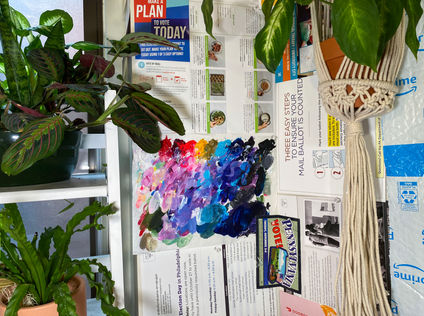 In the fall of 2020, I embarked on a series of daily paintings on found materials from my apartment: cardboard packaging, food wrappers, plastic waste, and especially junk mail, which had been accumulating excessively given the fall 2020 elections. In normal times, I’d have displayed these paintings in a gallery space. Instead, I created an installation in my bedroom, transforming the space into a visual sense of the chaos felt when spending the days in one space for so long. I covered the walls and ceiling in found materials like those I had been painting on, then hung the daily paintings on top. Since I cannot have people coming into the space in Covid times, I documented the installation through photography, and compiled the installation shots as well as images of the individual paintings into a book that exists both in both digital and print forms.